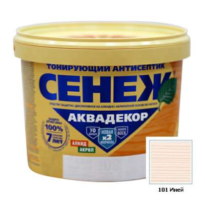 Антисептик СЕНЕЖ АКВАДЕКОР предназначен для долговременной защиты древесины от атмосферных осадков, плесневых, деревоокрашивающих и дереворазрушающих грибов, водорослей и насекомых-древоточцев, а также декоративной отделки под ценные породы. Сочетание в СЕНЕЖ АКВАДЕКОР алкидов, акрилатов и льняного масла улучшает проникновение в древесину, формирует эластичное дышащее защитное покрытие с мягким шелковистым блеском.