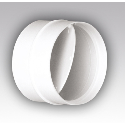 Соединитель с обратным клапаном служит для соединения между собой круглых воздуховодов одного диаметра. Для защиты от обратной тяги используется гравитационная заслонка, которая закрывается под действием силы тяжести. Открытие происходит при включении вентилятора.