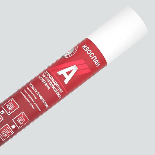 Изоспан A — термоскрепленный полипропиленовый нетканый материал. Ветрозащитная мембрана Изоспан A препятствует конвективному движению воздуха через теплоизоляцию, снижая теплопотери. Изоспан A обладает водоупорностью, достаточной для защиты утеплителя и других внутренних элементов конструкций стен от атмосферных осадков, проникающих под наружную обшивку, при этом является паропроницаемым материалом, поэтому не препятствует выходу водяных паров из утеплителя в вентилируемый зазор. Прочность материала способствует устойчивости к механическим нагрузкам на этапе монтажа и в процессе эксплуатации. Свойства материала Изоспан A позволяют применять его в качестве ветрозащиты в конструкциях каркасных стен, стен с наружным утеплением и вентилируемых фасадов. В конструкциях внутренних стен (межкомнатных перегородок) Изоспан A применяется для предотвращения проникновения частиц волокнистого утеплителя во внутреннее пространство здания.