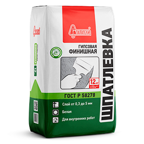 Белая гипсовая финишная шпатлевка, пластичная, быстротвердеющая и безусадочная, для сухих помещений.