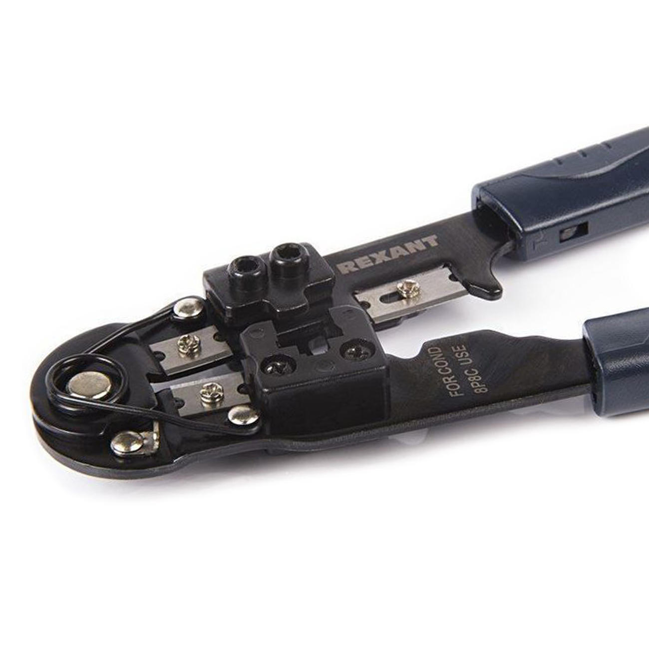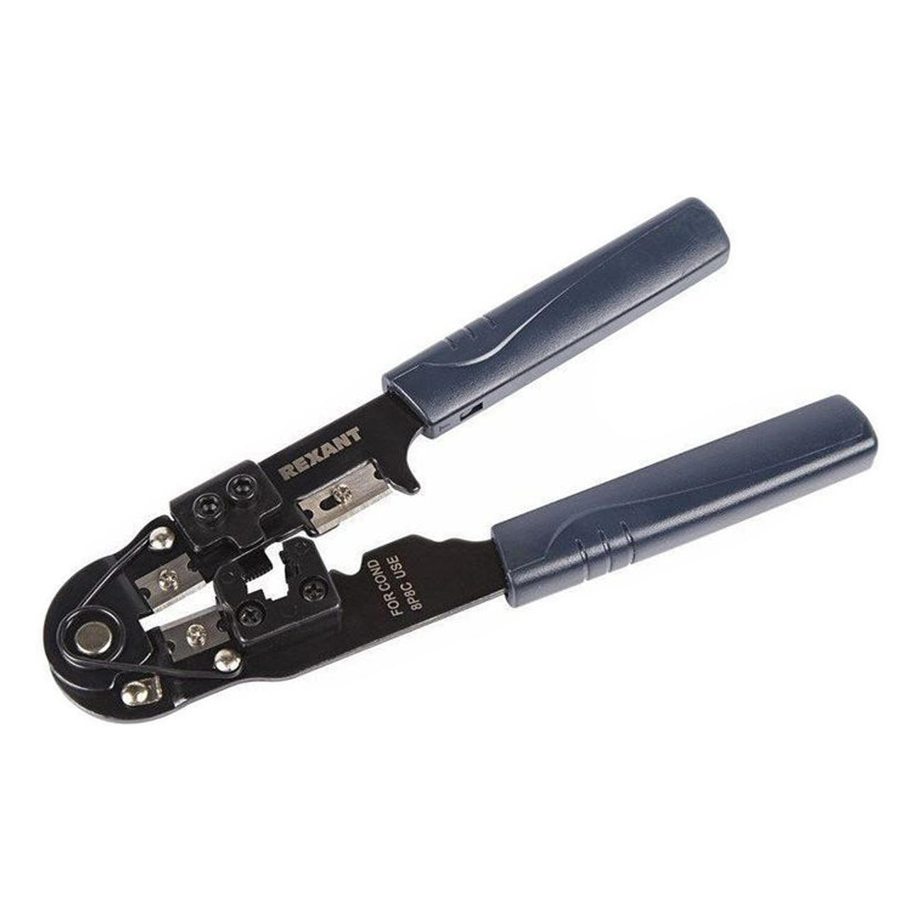 Компьютерный кримпер для обжима 8P8C REXANT оснащается возвратным механизмом, который обеспечивает простое исполнение серийных операций.
