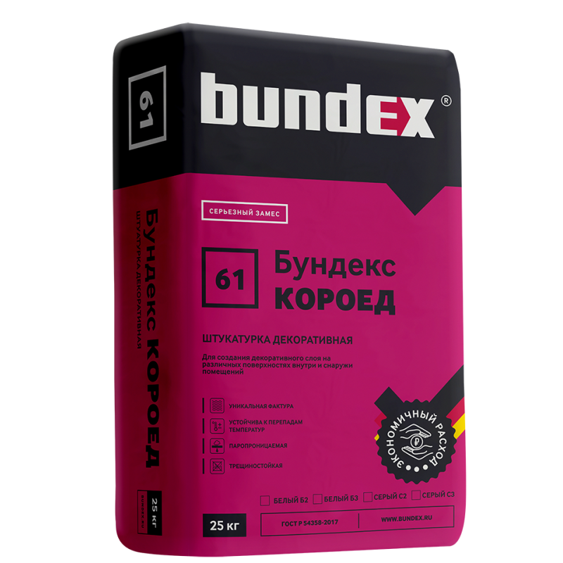 Сухая строительная смесь на основе цементного вяжущего, фракционированных заполнителей и специальных функциональных добавок. Используется для создания декоративного структурного слоя на различных поверхностях внутри и снаружи помещений. Получаемая поверхность предназначена под последующую окраску или пропитку гидрофобизирующими составами. Удобство нанесения и быстрый темп набора прочности снижают трудоемкость выполнения работ и сокращают срок ввода объекта в эксплуатацию. После высыхания образуется прочный, трещиностойкий, паропроницаемый и морозостойкий слой, пригодный для эксплуатации в помещениях с любой влажностью и на открытом воздухе.Для внутренних работ.
