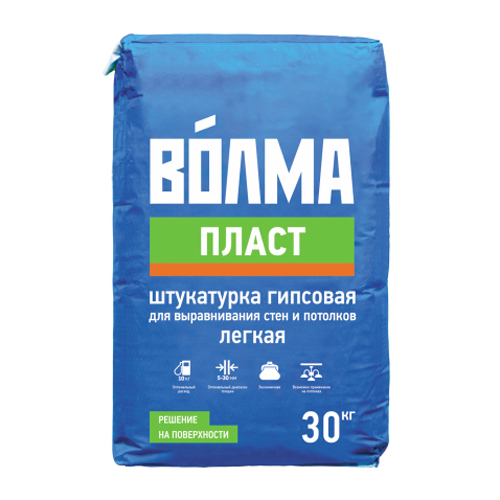 «ВОЛМА-Пласт» - сухая штукатурная смесь на основе гипсового вяжущего и заполнителя с применением минеральных и химических добавок, обеспечивающих высокую адгезию, водоудерживающую способность и оптимальное время работы.